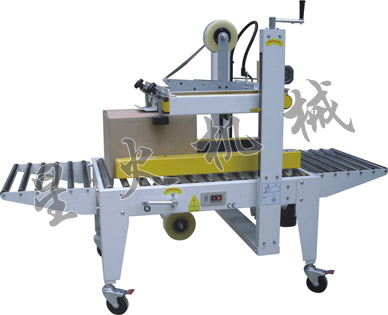 該封箱機亮調顏色為米黃色,也可根據客戶的喜愛,設計適宜相應生產流水線的機器顏色;